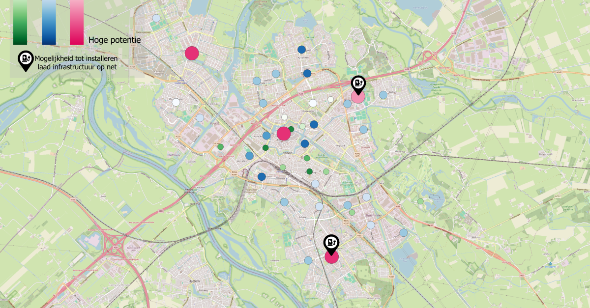 “De hublocatie wordt nu nog vaak gekozen op basis van een onderbuikgevoel”, gaat Koster verder. “Je koppelt dan de voorzieningen aan de beschikbare parkeercapaciteit. Maar je weet dan niet goed wat de ideale omvang is van zo’n hub en hoeveel vervoersstromen er dagelijks door dat gebied gaan. In tegenstelling tot andere modellen combineren we databronnen van onder andere vervoersstromen, verplaatsingspatronen, motieven van ritten en kunnen we deze kwantificeren en de keuzes onderbouwen op basis van data. Kaartbeelden maken een dekkend netwerk van hubs inzichtelijk, passend bij de gemeentelijke ambities en brengen hierin prioritering aan.
