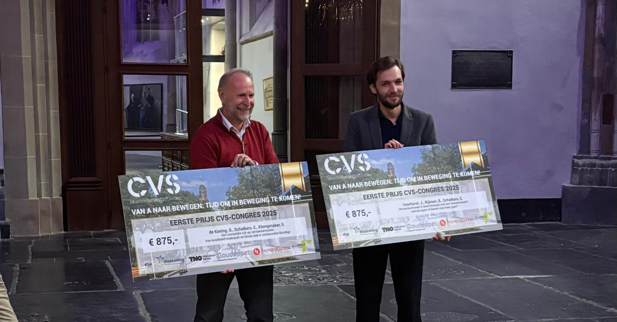 Goudappel-adviseurs Jesse Voorhorst en Bernike Rijksen schreven samen met Emma Schalkers (gemeente Amsterdam) een paper over 'Vervoersarmoede in beeld brengen met een verkeersmodel: wat als lopen of fietsen niet meer gaat?'. Dit paper won de eerste prijs op het CVS Congres dat plaatsvond op 20 en 21 november 2025.