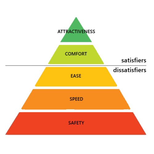 The customer needs pyramid helps to distinguish between the quality aspects of an environment, where each aspect consists of a unique set of needs and wishes of customers or users. According to the pyramid, these needs and desires follow a hierarchical order. A fundamental principle is that the needs of one layer must be satisfied before results can be achieved at a subsequent layer.