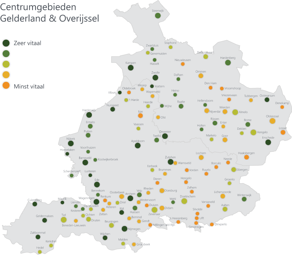- Biedt uniek inzicht in de vitaliteit van de 100 grootste Nederlandse centrumgebieden