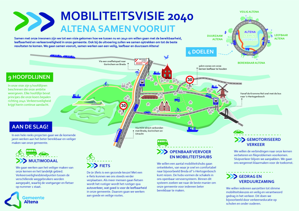 De Mobiliteitvisie 2040 - Altena Samen Vooruit samengevat in een infographic