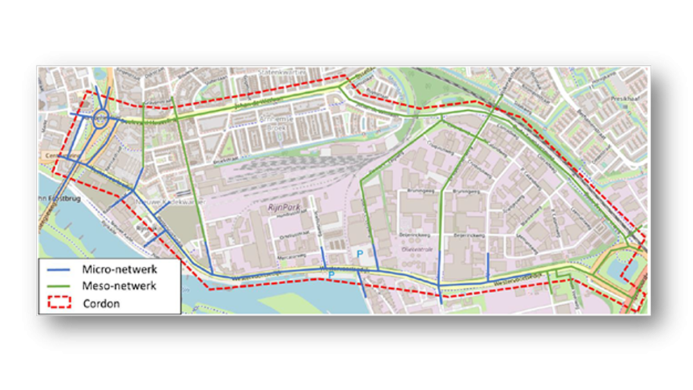 Met het simulatiemodel VISSIM is een hybride verkeersmodel opgesteld om de voorgestelde maatregelen te toetsen. Het belangrijkste gedeelte van het netwerk is als micronetwerk gemodelleerd. Hierin worden voertuigen op individueel niveau gesimuleerd, inclusief vrachtverkeer, bussen, fietsers en voetgangers. Ook zijn de verkeersregelinstallaties (VRI’s) op de kruispunten gemodelleerd zoals de daadwerkelijke regelingen op straat draaien.